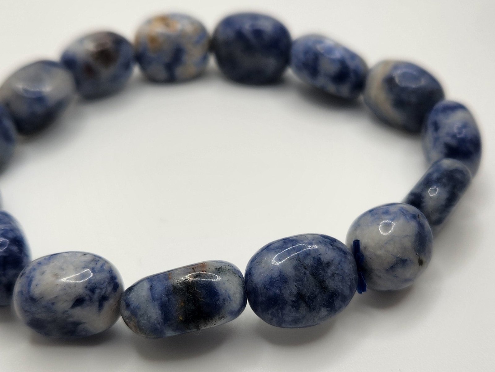 Beyond its aesthetic appeal, sodalite is often associated with emotional balance and clarity of thought, making this bracelet not just a beautiful accessory but also a meaningful companion. Pair it with casual outfits, formal attire, or even other layered jewelry pieces—the Sodalite Tumbled Bracelet adapts effortlessly to your personal style. Elevate your accessory game and embrace its harmonious fusion of form and function.4
